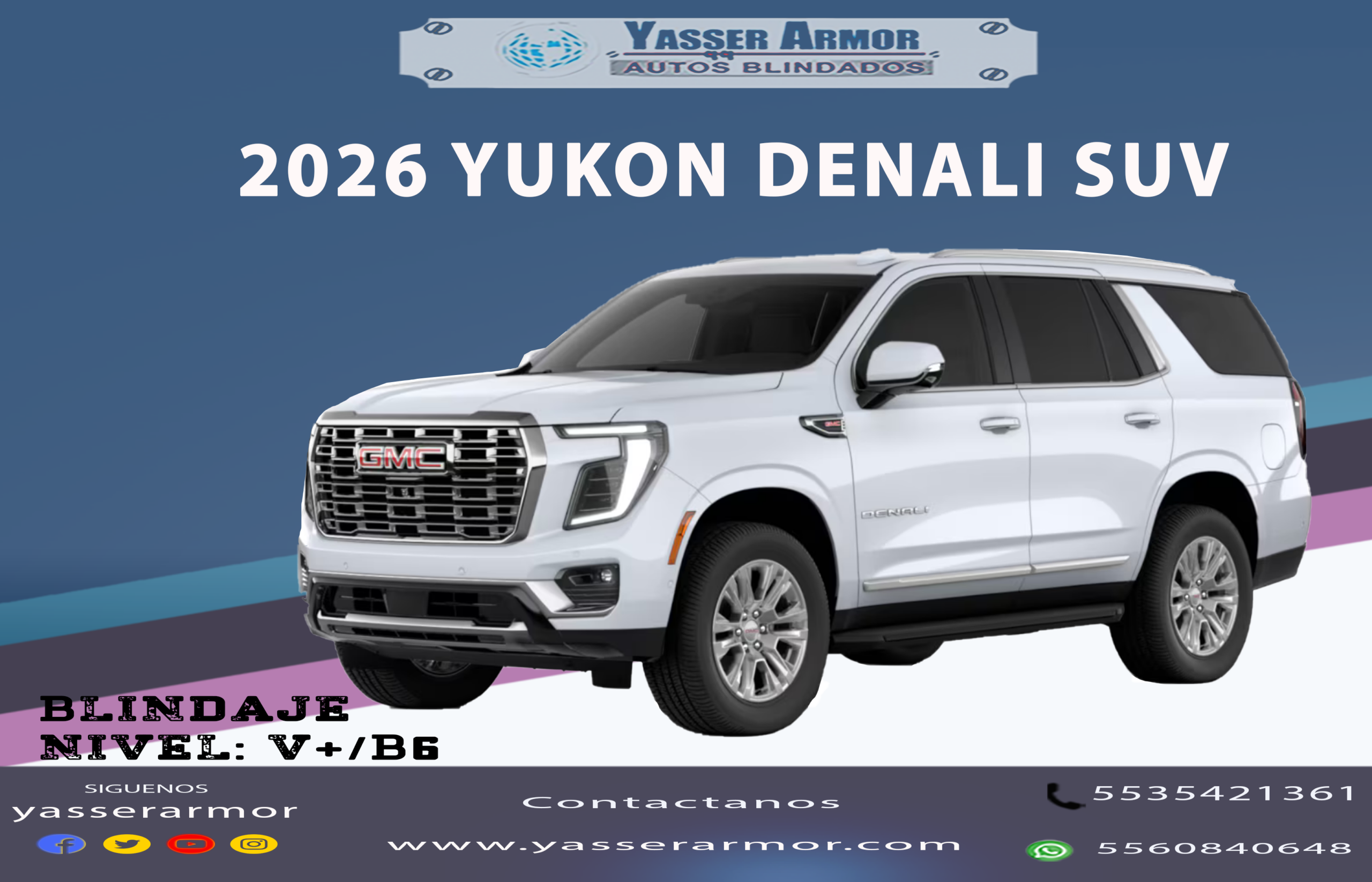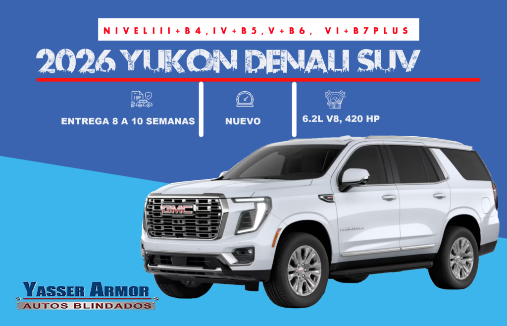 2026 Yukon Denali Corta Blindada nivel III+/B4, IV+/B5, V+/B6 PLUS Yasser Armor