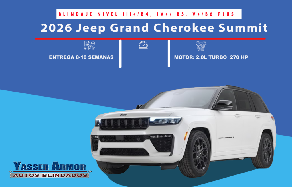 2026 Jeep Grand Cherokee Summit Corta 5Pas. Blindaje Niveles III+/B4, IV+/ B5, V+/B6 Plus Yasser Armor